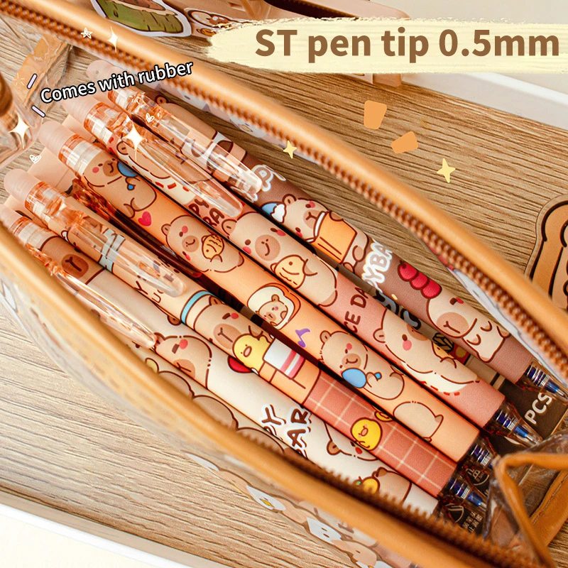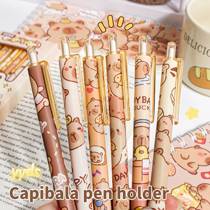 Kawaii Capybara Gel Pen Set Black Blue Ink Quickly-Drying Cute Press Gel Pens Aesthetic Stationery School Office Supplies