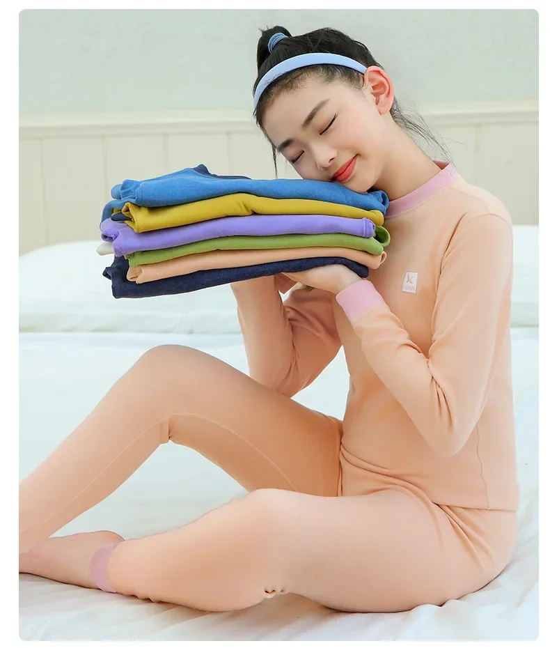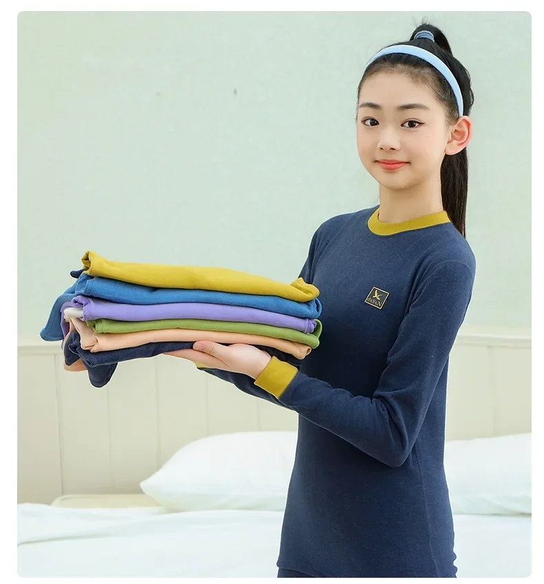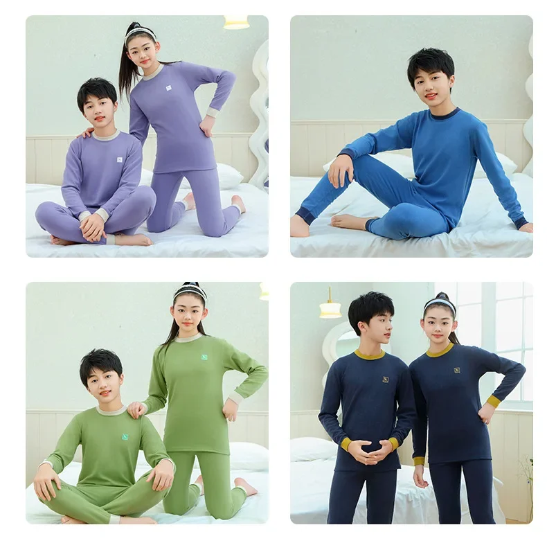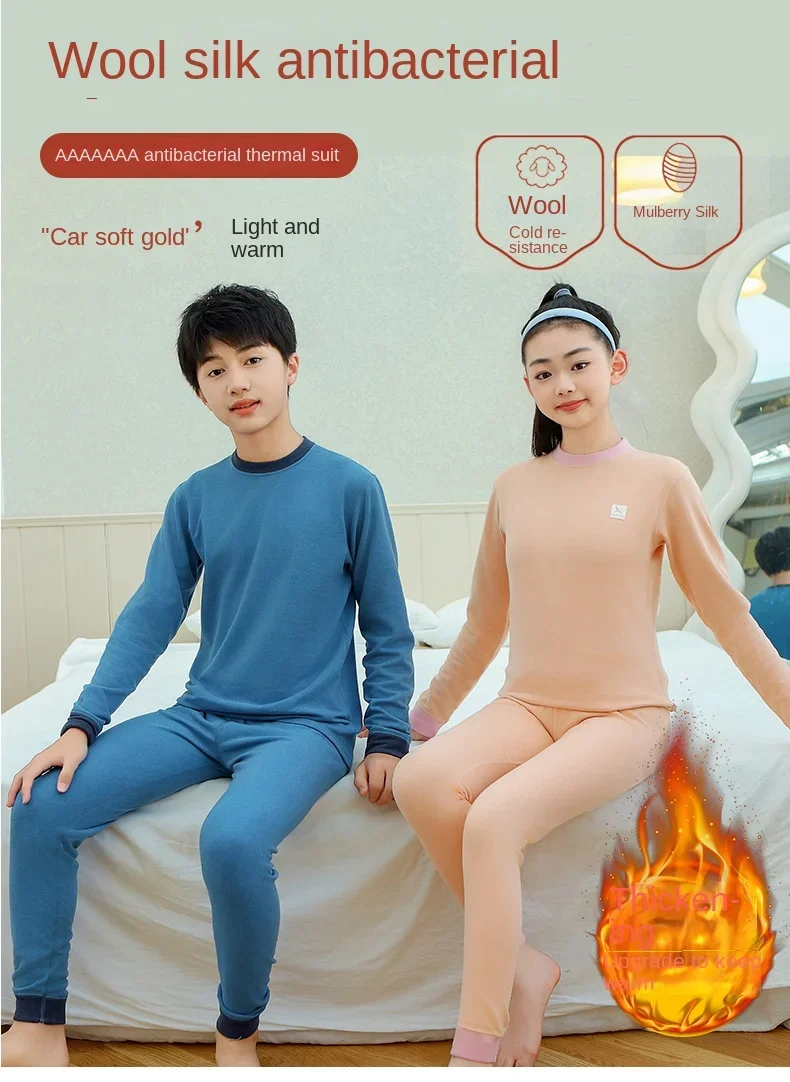 Children's Thermal Underwear Set 7A Antibacterial Autumn Winter Warm Clothes Kids Wool Nature Silk Teen Boys Girls Loungewear