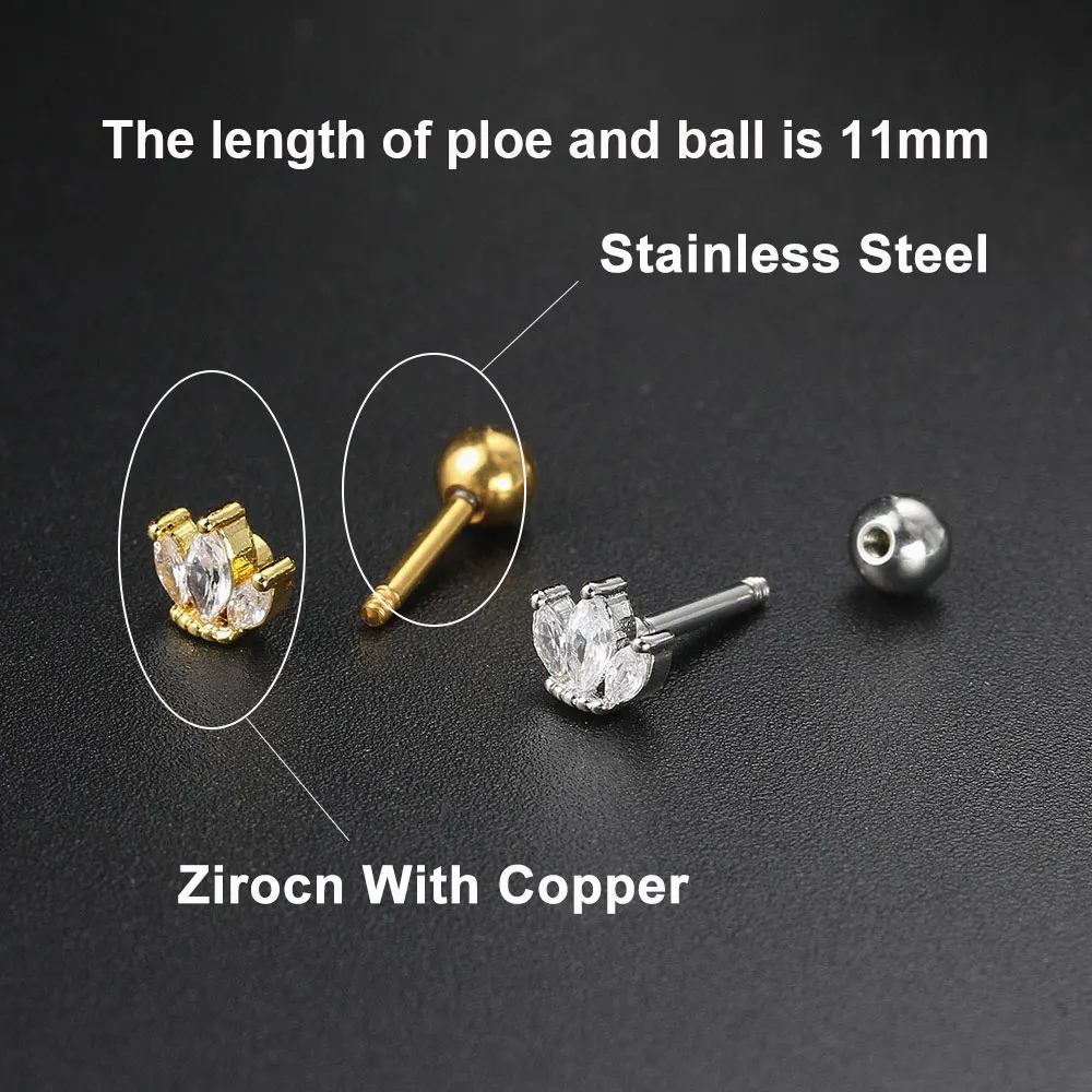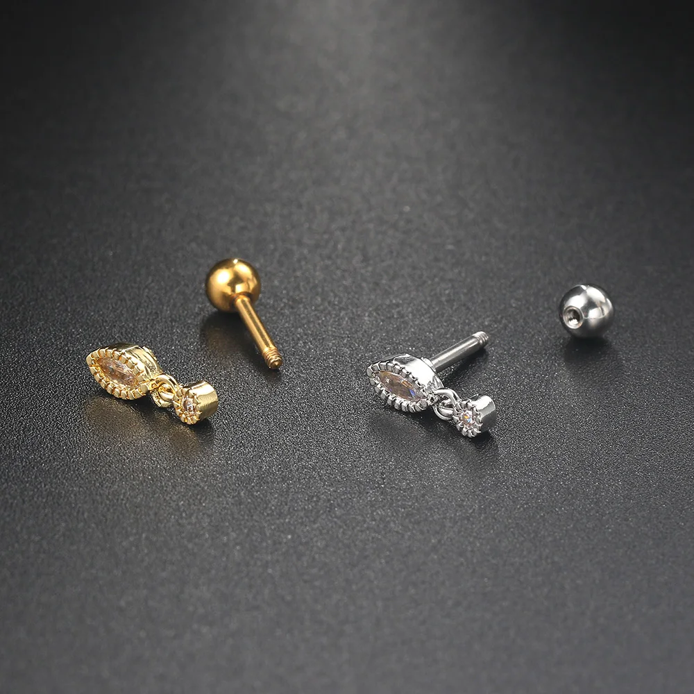 Helix Tragus Piercing Earring For Women New Zircon Cartilage Drop Earring Ear Ring Stainless Steel Rook Lobe Piercing Jewelry Gift For Girls Teens 1PC