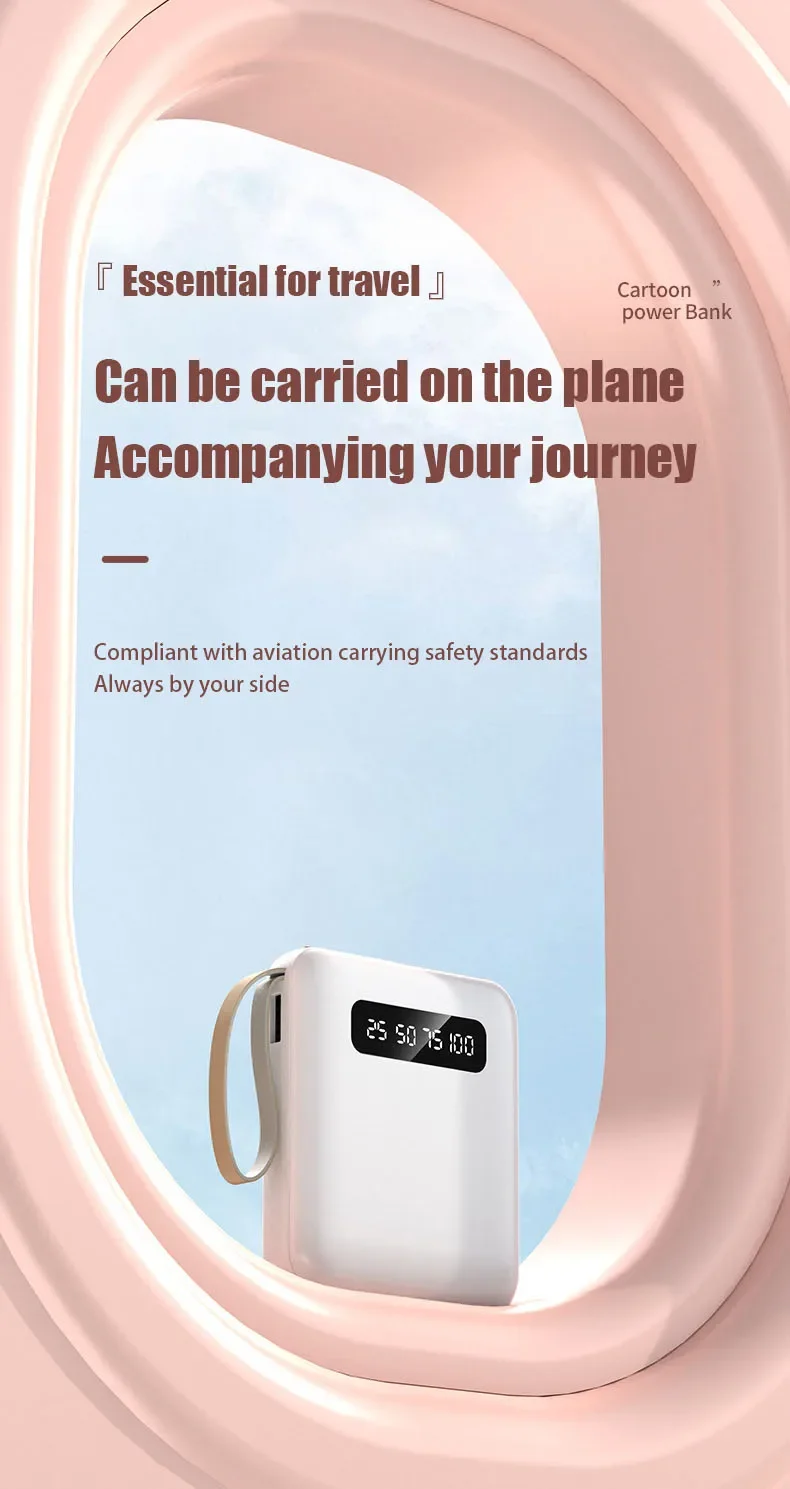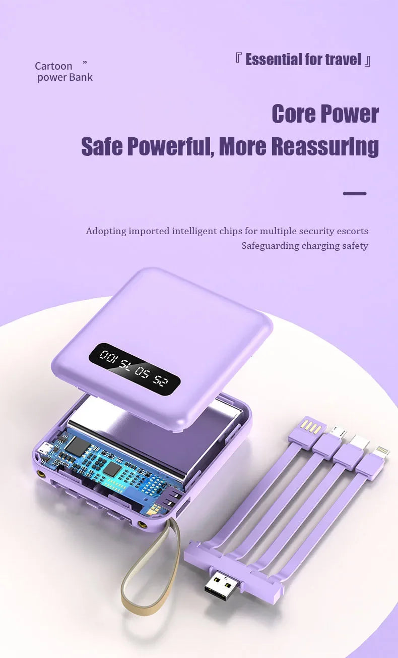 Phone Power Bank with 4 Charging Cables Mini Large Capacity Mirrored Power Bank Portable Fast Charging Powerbanks 20000 10000mAh