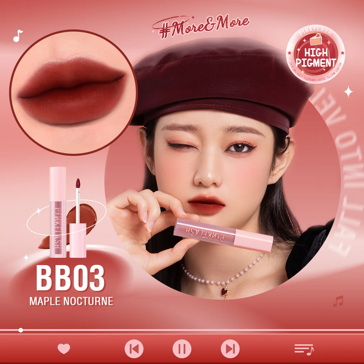 【Mousse Texture】Fall Into Velvet Airy Matte Mousse has a light and soft texture just like mousse, easy to apply on lips without clumping for a smooth velvet lip finish. Also, easy to spread that can use on the eyelid and cheeks, to create a monochromatic makeup look.