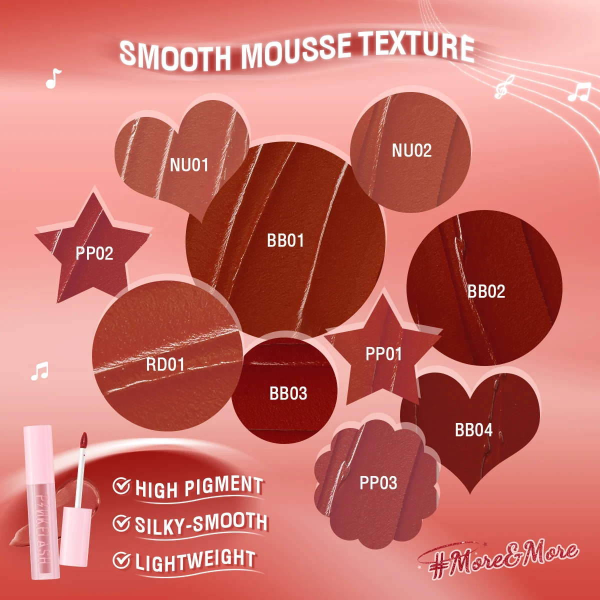 【Lightweight】New lightweight and smooth mousse feeling texture with soft flocked applicator, which makes your lips feel comfortable, a whole day without the burden.