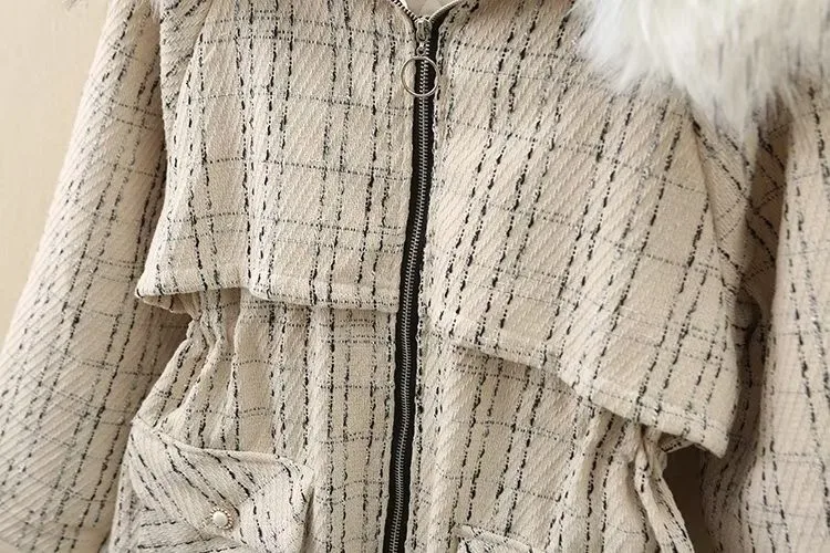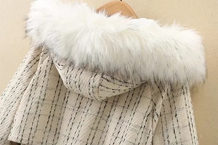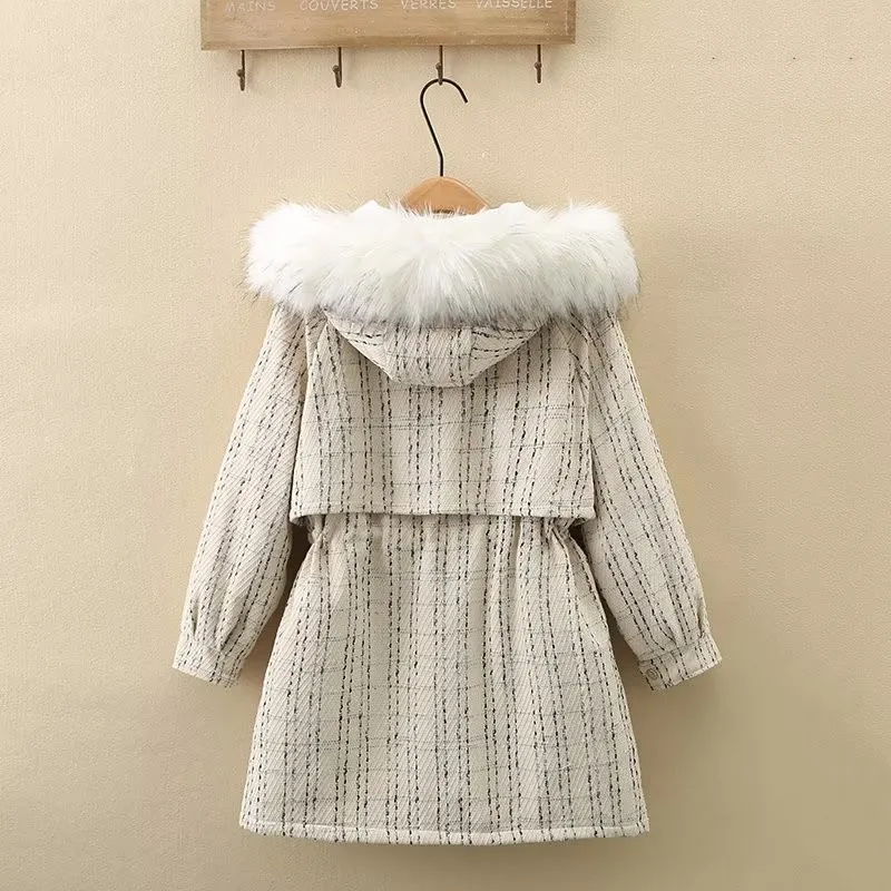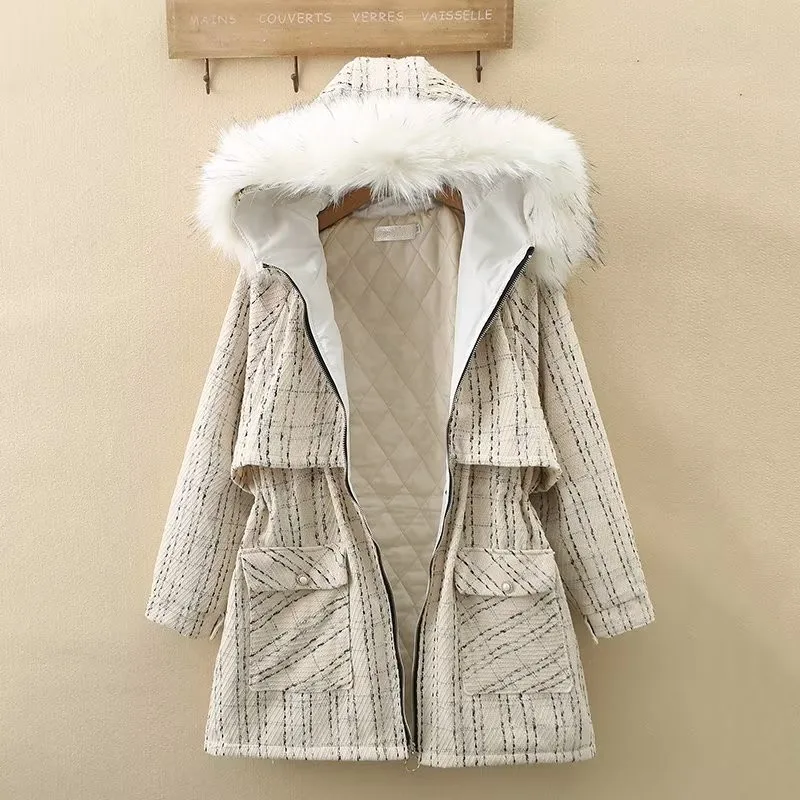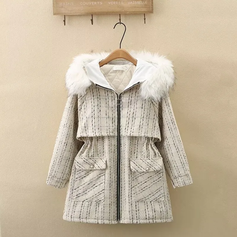 Quality Winter Jacket Detachable Fur Collar Hooded, Cotton And Thickened Windbreaker Tweed Fabric