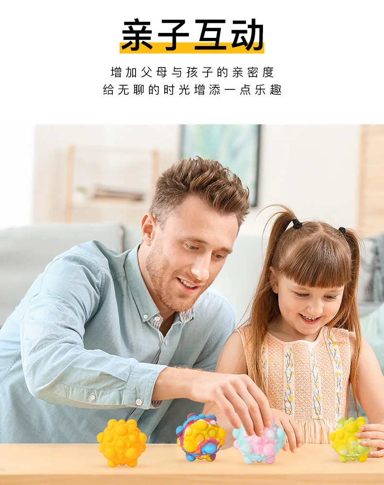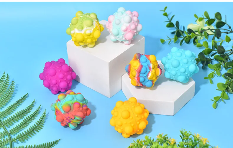 Rainbow Pop Ball Push Bubble Antistress Decompression Toys Squeeze 3D Elastic Ball Stress Relief Sensory Toy For Kids Gift