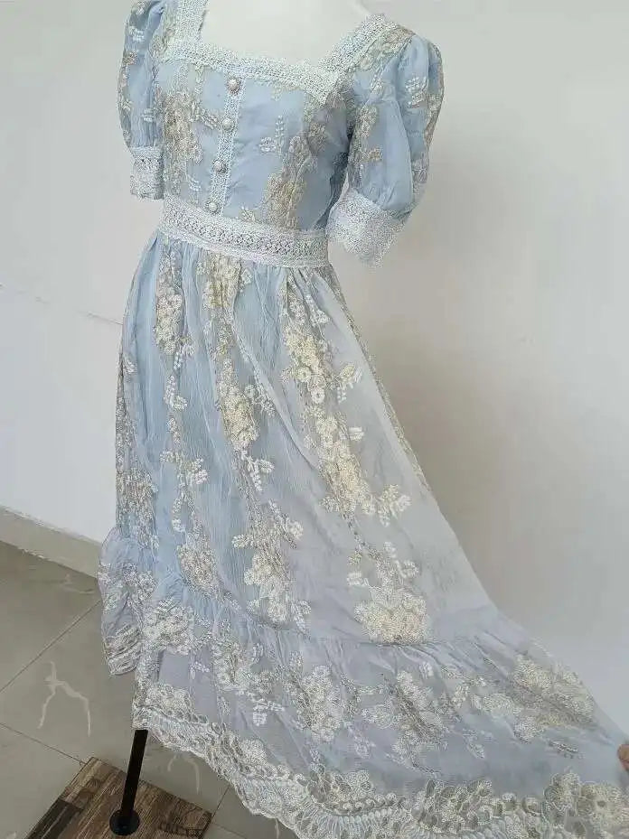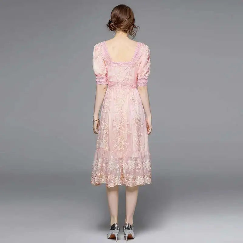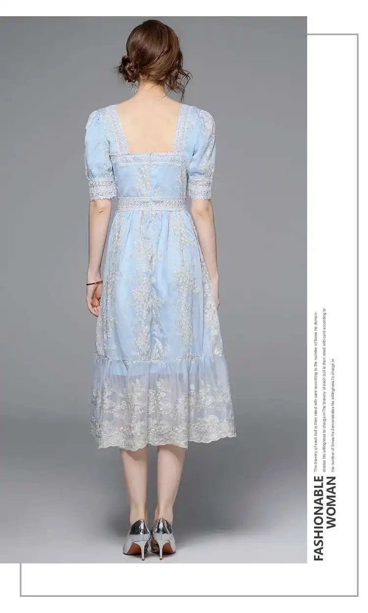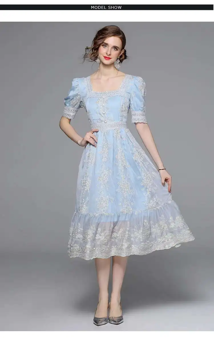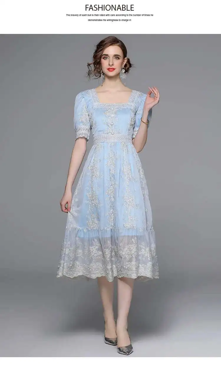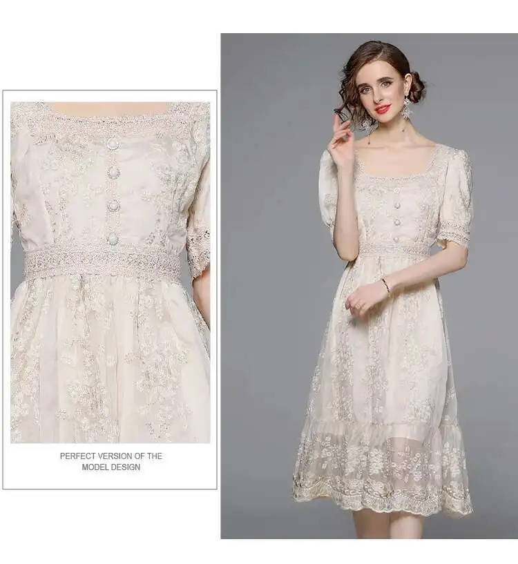 Flower Embroidery White Lace Prom Dresses Women Short Sleeve Fashion Dress Female New Style