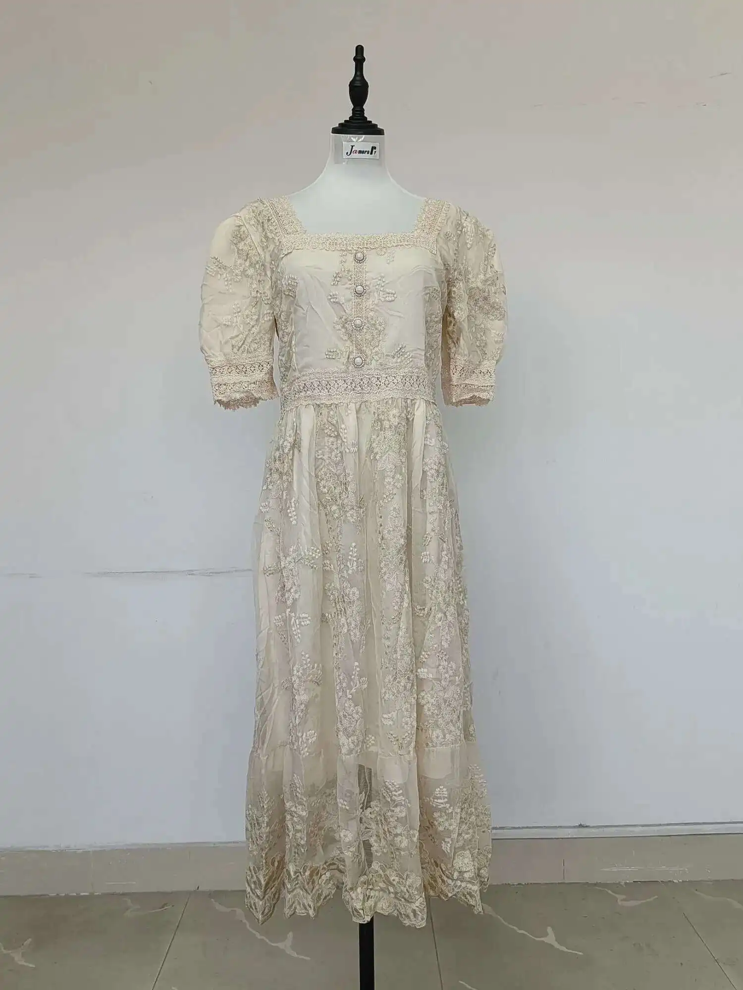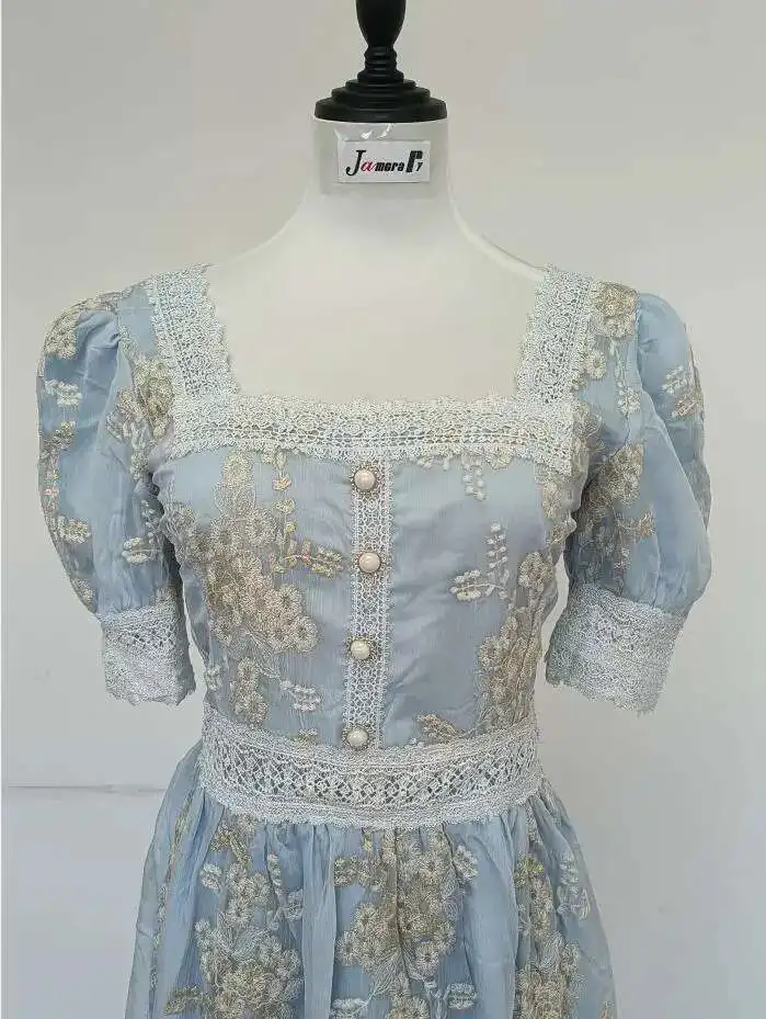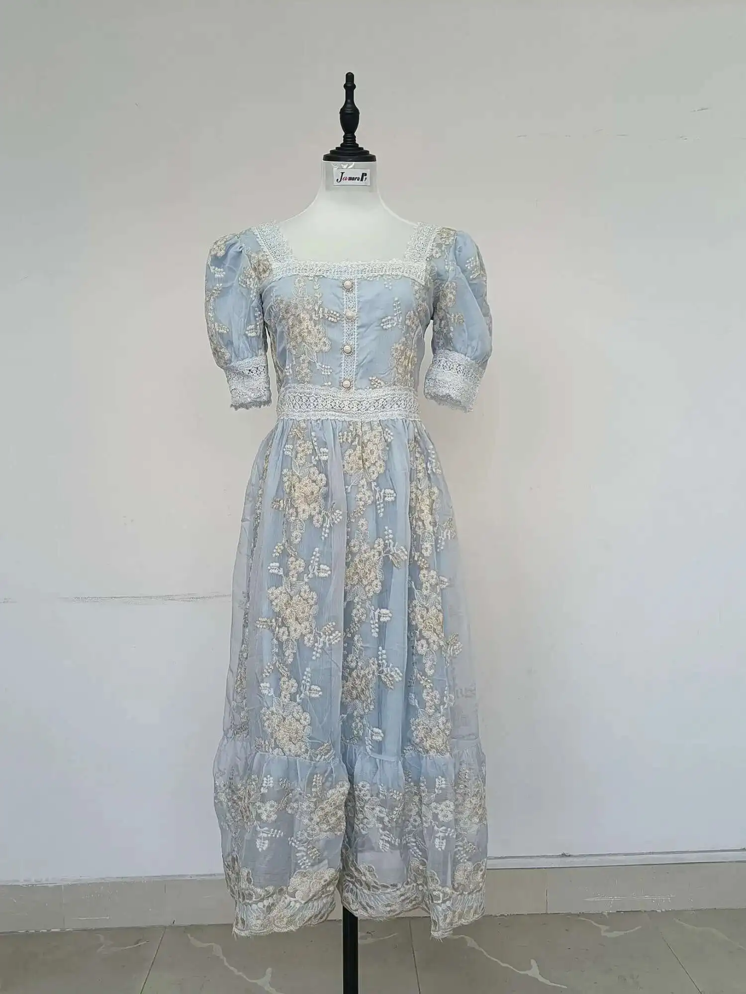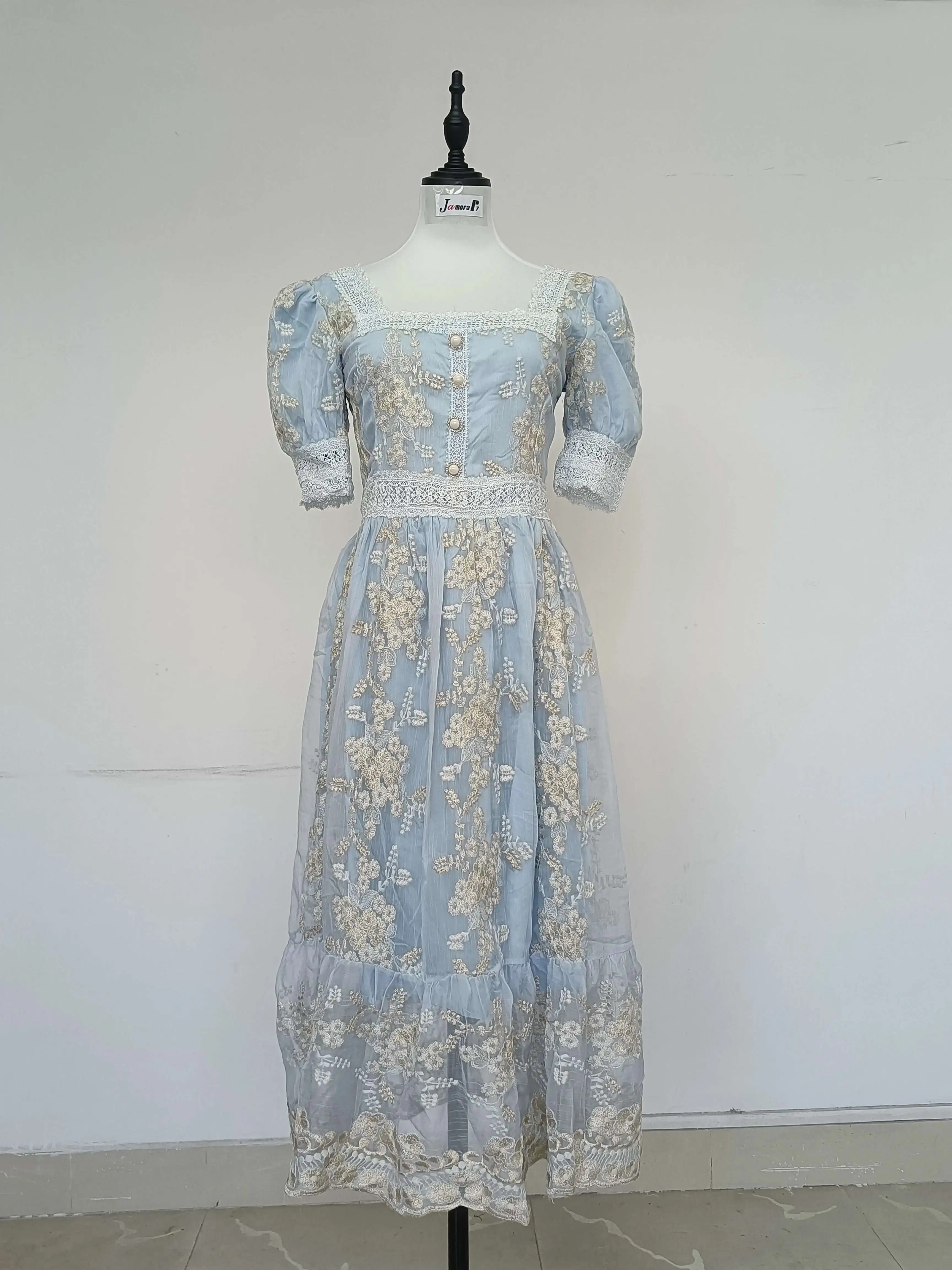Flower Embroidery White Lace Prom Dresses Women Short Sleeve Fashion Dress Female New Style