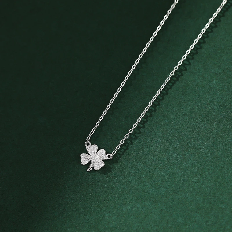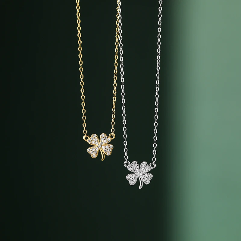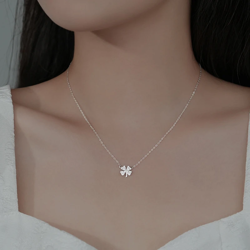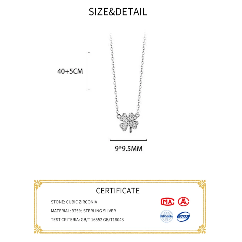 Real 925 Sterling Silver Zircon Clover Choker Necklace For Fashion Women Classic Fine Jewelry Minimalist Accessories