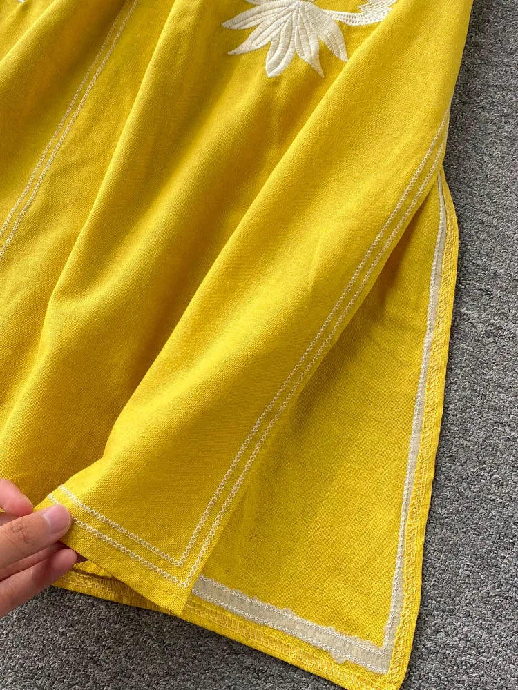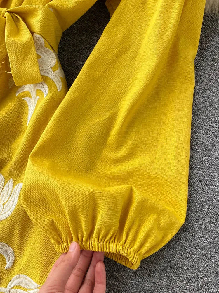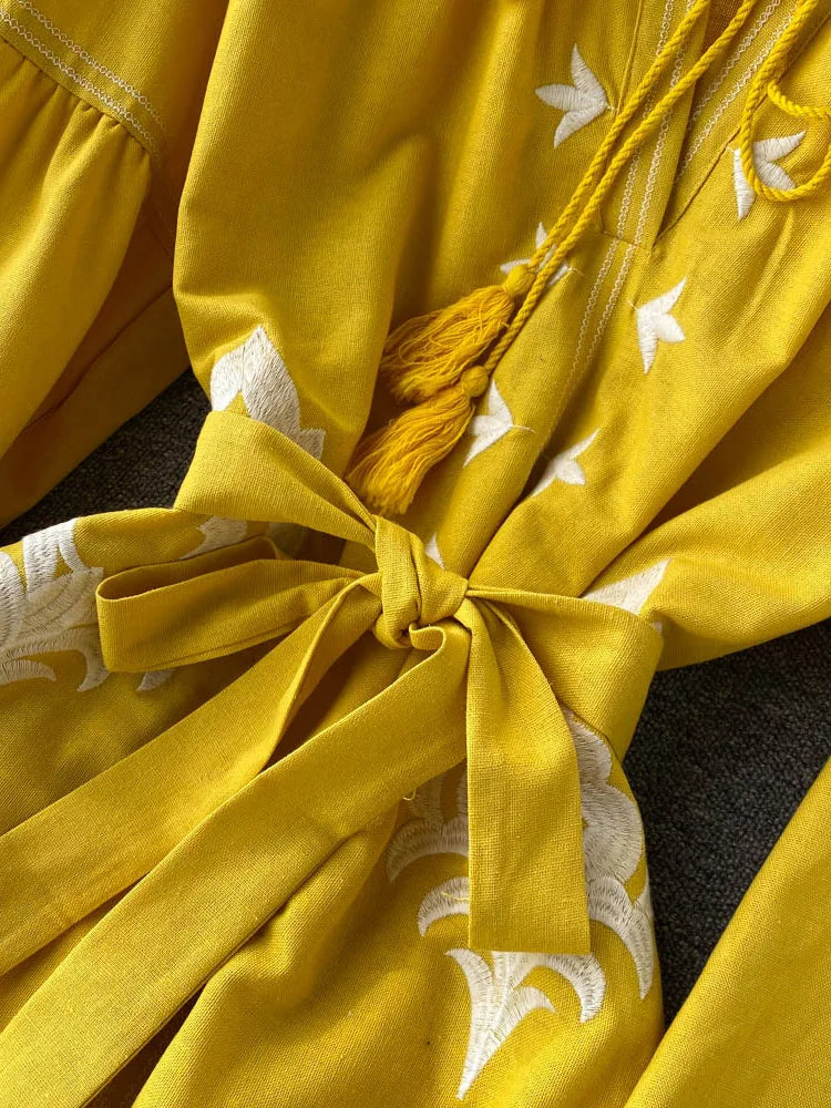 Women's Embroidered Dress V-neck Tie Split Retro Indie Folk Style Holiday Beach Long Dress