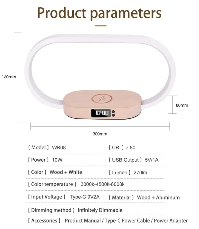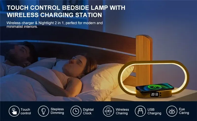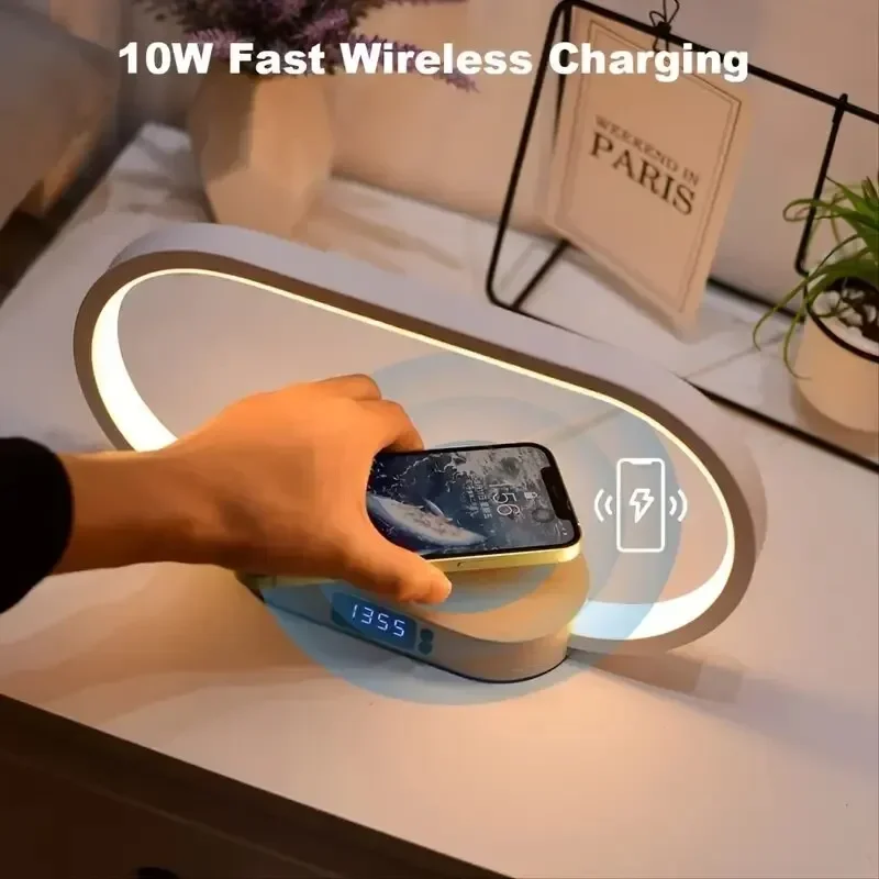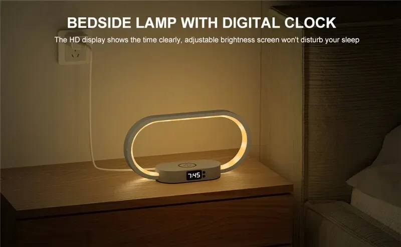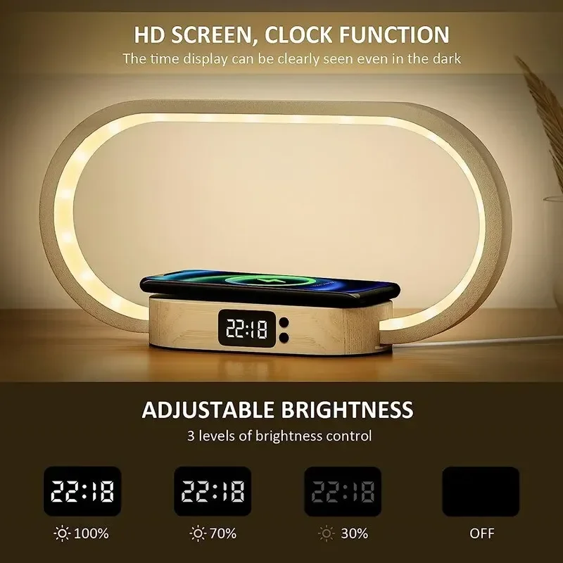 Wireless Charger Multifunction Pad Stand Clock LED Desk Lamp Night Light USB Port Fast Charging Station Dock For iPhone Samsung