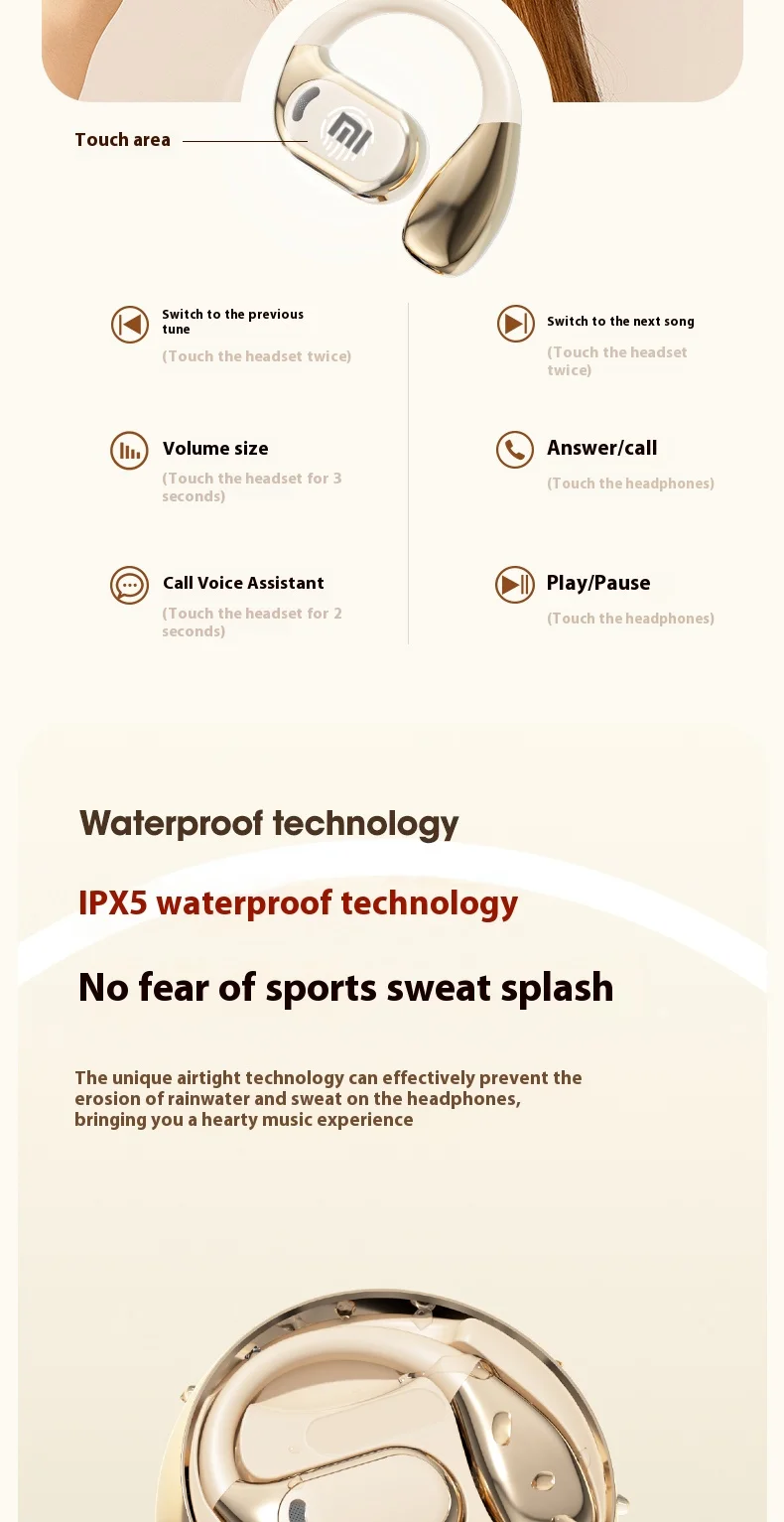 Wireless Headphones HIFI Sound Bluetooth Earphones Running Headsets Waterproof Painless Wearing Earphones With Mic